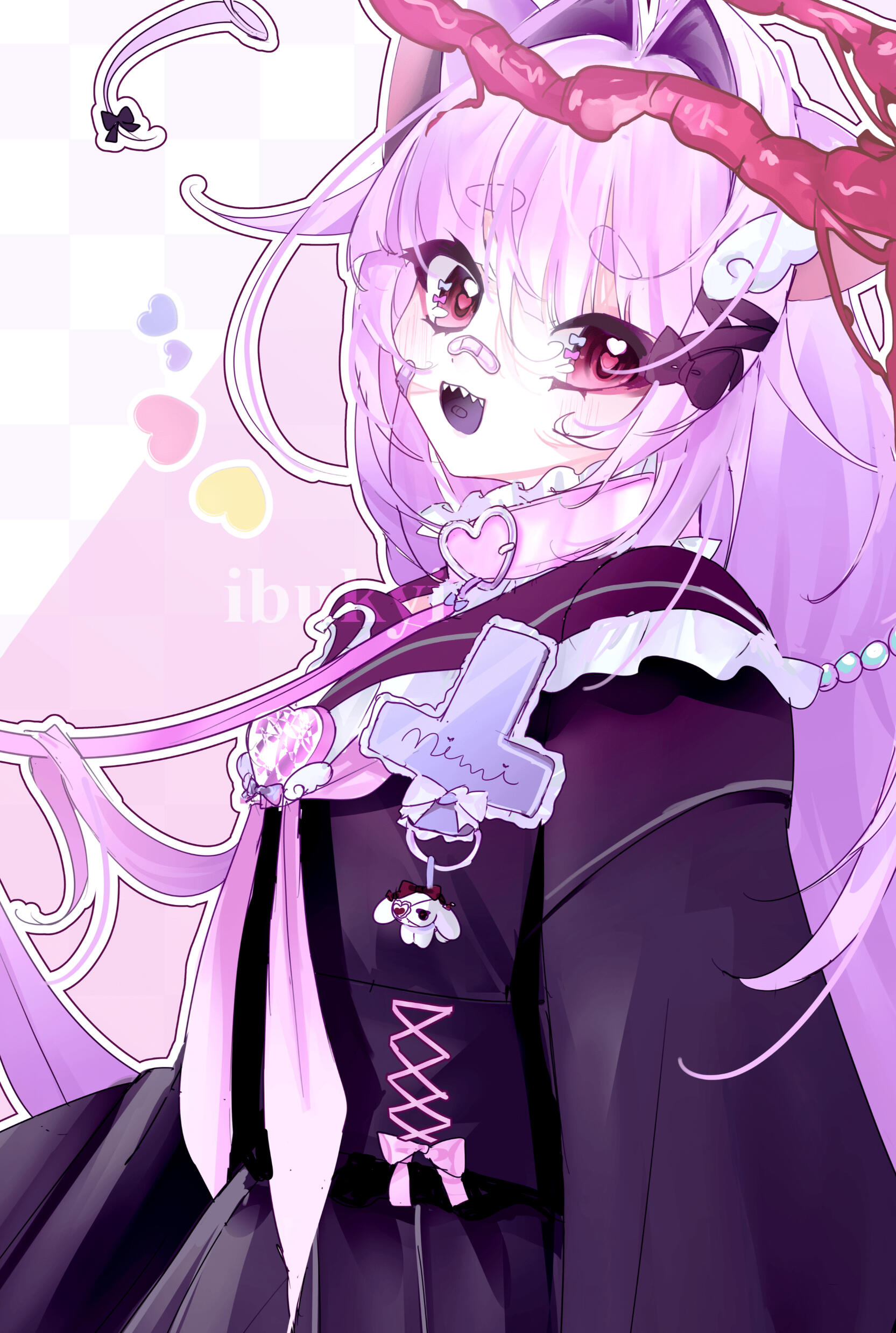 mimi was an average girl struggling from various forms of illness. the continuous pain, trauma, and stress drove her to her breaking point.her soul was trapped in purgatory, until being pulled out by the god of love, giving her a second chance at life as a fallen angel.forming a contract with her familiar, bibi, she became a magical girl! fighting evil while being cute! mimi was incredibly violent, slashing up her enemies with her lovely bibi-chan box cutter! despite her violence prone ways, mimi was beloved by all, and the public was shocked when she retired to become a full-time neet streamer!though she finds it cheesy, with the power of love, she was granted a pure halo of light, transforming her into a full angel.mimi currently resides in a seaside ghost town, in a tiny cottage near the mountain range.